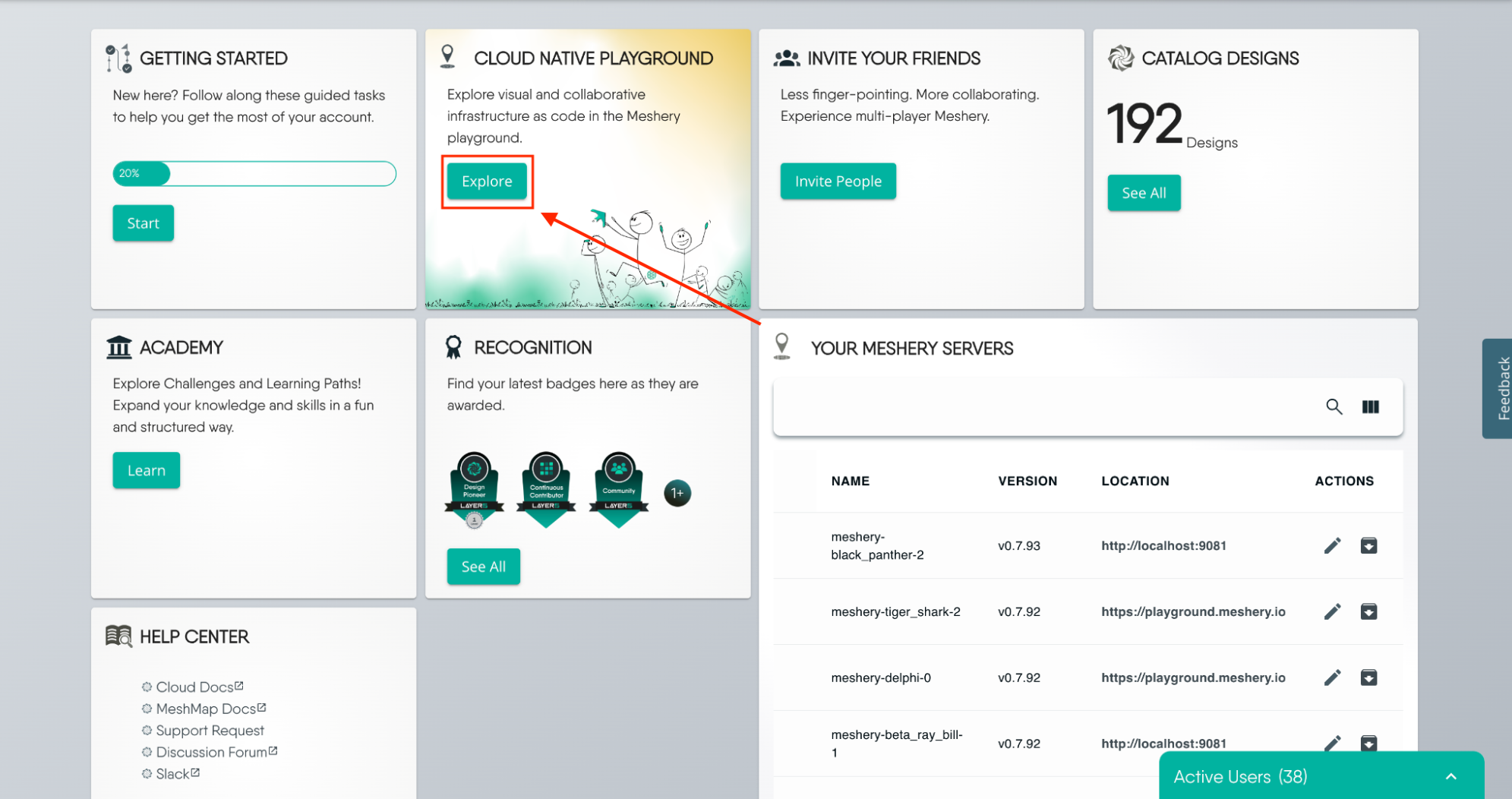 2. In the Cloud Native Playground tile, click Explore to navigate to Kanvas.